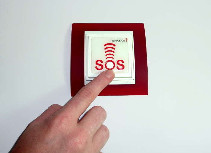 Schnelle Hilfe in Pflegeheimen, Kuranstalten, Therapiezentren  etc. Alarmierung über SMS, Telefon, E-Mail etc. verspricht rasche Hilfe Beliebig viele Notruf-Schalter pro Einrichtung und Raum und nachträglicher Einbau in jeder Umgebung möglich careCLICK besteht aus beliebig vielen Notruf-Schaltern, Gateways zum Empfang der Signale und einem Server, der den Notruf absetzt